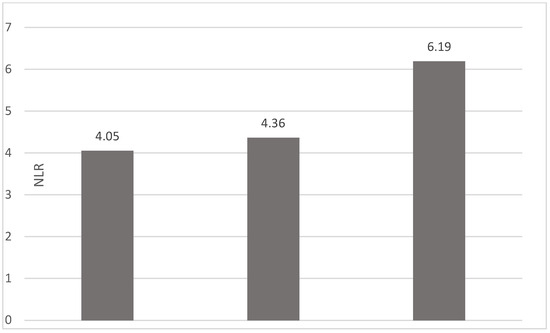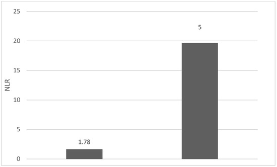 Mean NLR for patients with NLR values between 0 and 2 (left) and higher than 6 (right).