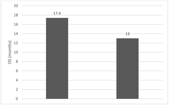 Median OS (months) for patients with NLR values between 0 and 2 (left) and higher than 6 (right).