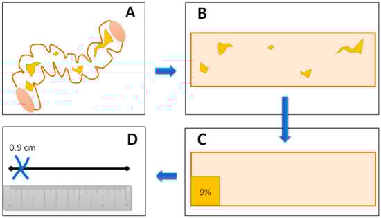 The most intriguing and complicated step of both scores is the calculation of the percentage of an anatomic segment covered by a given lesion. This step requires an abstraction exercise in which the observer must imagine the tubular surface as an open rectangle, where the lesions of interest are summed to quantify the percentage of the total surface of the given ileocolonic segment they cover. The exercise is theoretical and probably influenced by the observer’s experience and sensation of the severity. This is likely an area of discrepancy between different observers (Figure 4) [32]. It is important to remember that the surface involved in any CD lesion should include the ulcerated surface, and, therefore, there cannot be a lower percentage for the affected surface than for the ulcerated surface.