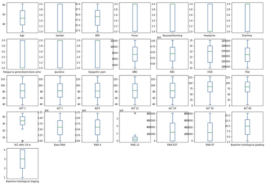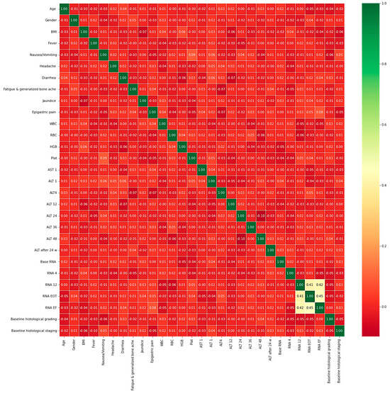 Vikas et al. [35] described a diagnostic system for identifying the presence of the hepatitis C virus (HCV). This system uses case-based reasoning (CBR) and correlation lift metrics to create a predictive model for detecting HCV. The proposed method can accurately predict whether a patient’s record shows HCV indications or not and can help reduce the risk factors associated with HCV in humans. Additionally, the system can differentiate between patient records of living and deceased individuals. Overall, this approach is highly effective in detecting HCV and can potentially decrease the virus’s prevalence in the population. Zaki et al. [36] discussed how a rough set of data were examined to identify attribute dependency and to create a reduced set of attributes. The primary objective of the dataset was to predict whether HCV was present or absent. The analysis revealed that the proposed methodology was exact and achieved high accuracy in predicting HCV’s presence or absence.