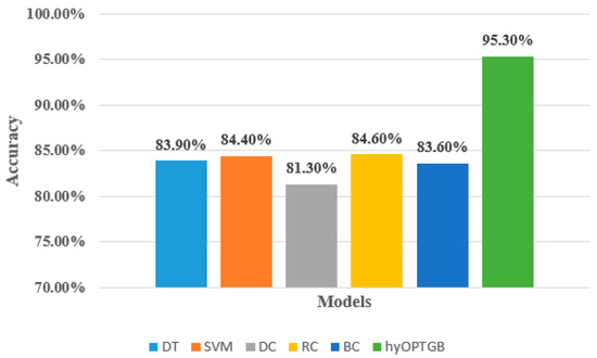 - Comparative Analysis: This paper conducts a comprehensive comparison of the hyOPTGB model against five other machine learning models, including decision tree (DT), support vector machine (SVM), dummy classifier (DC), ridge classifier (RC), and bagging classifier (BC). This comparative analysis helps demonstrate the superiority of their proposed model.