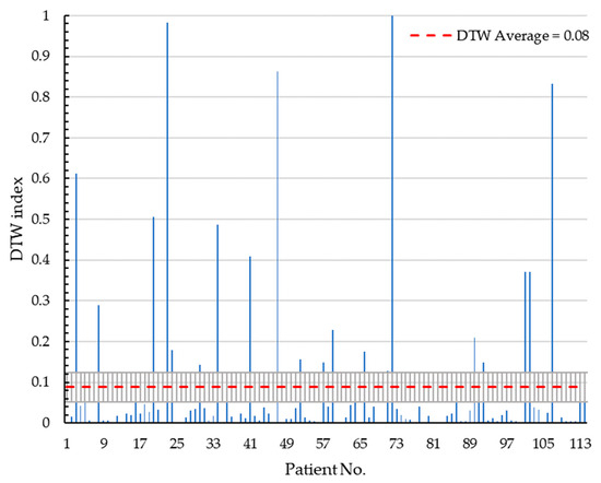 Figure 12 presents the results according to the DTW index for each of the 114 patients.