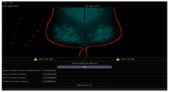 Once the result is obtained, it is displayed in a PDF report so that only the physician will have that information. Asymmetry holds potential biological significance and can be influenced by various factors, including genetics, hormonal fluctuations, developmental abnormalities, and lifestyle choices, without necessarily indicating the presence of tumors. For instance, during puberty, hormonal changes can lead to the uneven growth of breast tissue, resulting in variations in breast size and shape. Moreover, genetic factors can also contribute to variations in breast size and shape, as some individuals may inherit larger or smaller breasts from their parents. Overall, breast asymmetry is a natural occurrence influenced by a range of biological and lifestyle factors. A study conducted by Kayar et al. showed a correlation between morphological asymmetry and breast cancer. Statistically significant evidence was observed linking breast asymmetry and cancer when the breast asymmetry ratio exceeded 20%. This association held true in all age groups, specifically in the 40–69 age range, with a 99% confidence interval [11]. Although generally considered normal, significant asymmetry can cause physical and emotional discomfort, and more importantly, serve as an indicator of potential tumor development [11,12].