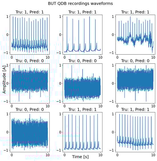 Examples of true positives and true negatives yielded by the proposed CNN-LSTM model, utilizing the BUT QDB dataset.