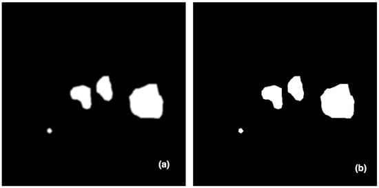 An example of the post-processing effect: (a) predicted mask and (b) image after mask post-processing.
