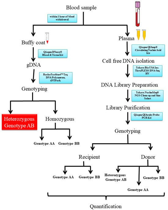 Detecting minute quantities of dd-cfDNA or donor DNA in the recipient’s plasma sample poses a challenge, yet it is attainable through advanced molecular biology methods. Various techniques exist for identifying and quantifying donor-derived cell-free DNA, including: (i) sequencing both donor and recipient genomes and pinpointing distinct single nucleotide polymorphisms (SNPs), (ii) recognizing the presence of the Y chromosome from a male graft in a female recipient, (iii) employing next-generation sequencing assays that use a panel of SNPs to discern donor DNA sans the requirement of a donor sample and sequencing, and (iv) employing a targeted approach where SNP assays are meticulously chosen based on minor allele frequency, and subsequently evaluated for applicability [1,4,13].