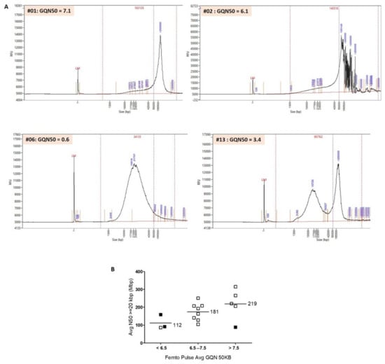 3.2. Evaluation of the Quality of HMW DNA with the Femto Pulse System