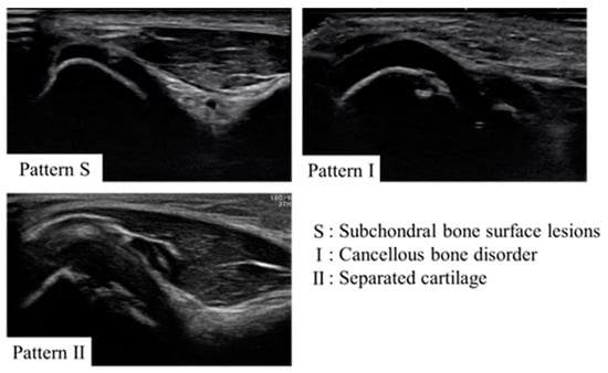 Characteristic ultrasound images of OCD extracted during the current screening are shown. This study followed Okada’s pattern classification.