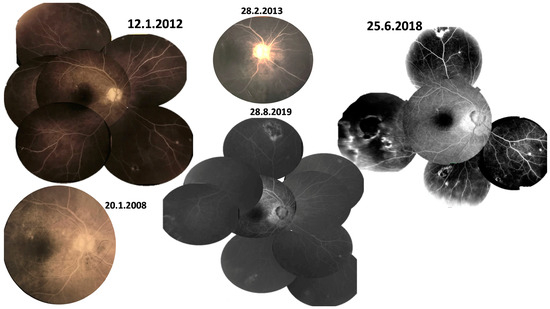- Glasgow, B.J.; Brown, H.H.; Foos, R.Y. Miliary Retinitis in Coccidioidomycosis. Am. J. Ophthalmol. 1987, 104, 24–27. [Google Scholar] [CrossRef]