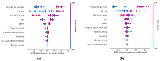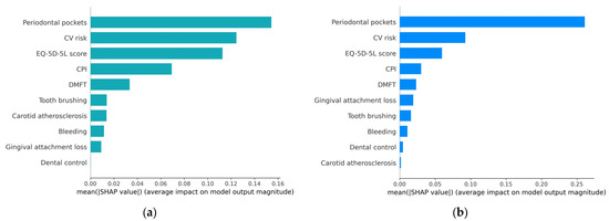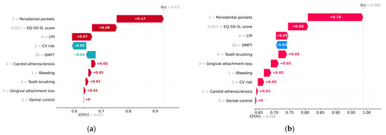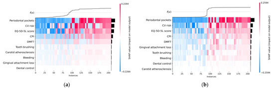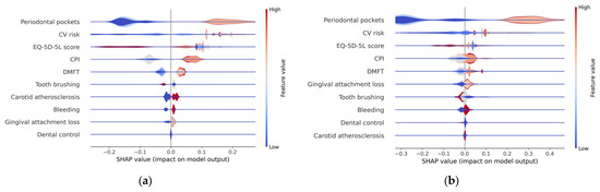 The rest of the paper is organized as follows: In Section 2, we provide a summary of related research in the field of prediction of metabolic syndrome/periodontal disease with ML models. Section 3 illustrates the proposed methodology, the collected data, and the performance metrics used in the evaluation of the prediction models. Section 4 presents the best ML models built and their hyperparameter values at the end of the optimization process. The values of the performance metrics of the prediction models are also presented. A substantial part of this section has been devoted to SHAP’s explanations of machine learning models. Finally, Section 5 and Section 6 conclude the study and offer insights into potential future directions.