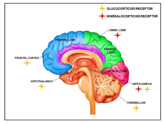 The GR consolidates through both rapid and delayed (genomic) pathways [73], whereas MR has a specific (non-genomic) role during memory retrieval, possibly as a mechanism to focus attention on new stress. Taken together, in its role as a rapid corticosteroid sensor, the MR facilitates adaptive behavior in context to stressors while inhibiting behaviors that are no longer relevant [74]. The distribution of GR and MR in cerebral cortex regions is shown in Figure 1.