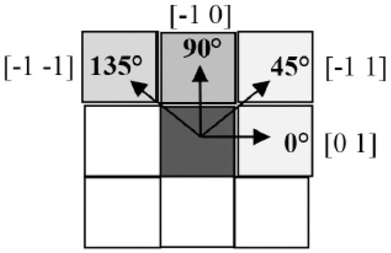 The correlation matrix was examined for feature selection. Among the 33 features obtained, the features with a correlation above 0.90 were eliminated and a selection was made. The classification performances of each selected feature alone were examined with the area under the curve (AUC) values obtained as a result of ROC Analysis. Therefore, a set of nine features are extracted for training the classifier methods. Figure 4 summarizes four different directions for GLCM and GLRLM matrices.