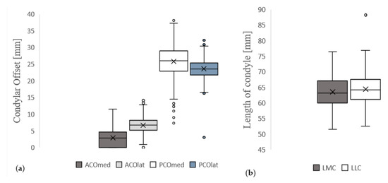 - Voletti, P.B.; Stephenson, J.W.; Lotke, P.A.; Lee, G.C. No sex differences exist in posterior condylar offsets of the knee. Clin. Orthop. Relat. Res. 2015, 473, 1425–1431. [Google Scholar] [CrossRef]