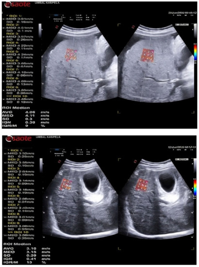 - Dietrich, C.F.; Bamber, J.; Berzigotti, A.; Bota, S.; Cantisani, V.; Castera, L.; Cosgrove, D.; Ferraioli, G.; Friedrich-Rust, M.; Gilja, O.H.; et al. EFSUMB guidelines and recommendations on the clinical use of liver ultrasound elastography, update 2017 (long version). Ultraschall Med. 2017, 38, e48. [Google Scholar] [PubMed]
