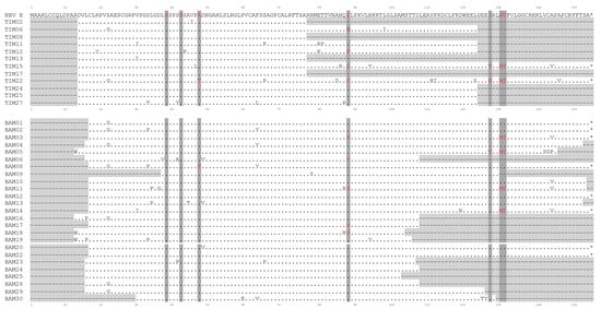 2.6. Phylogenetic Analysis of Viral HBS Genes