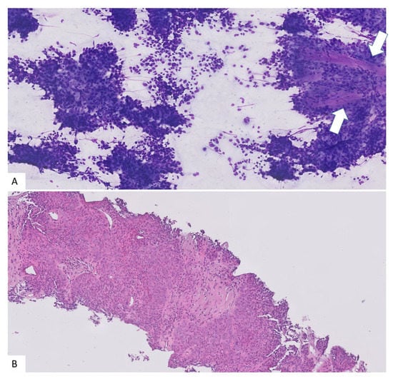 3]. To increase biopsy performance, it is advisable that a pathologist reviewed the sample obtained at the time of extraction (ROSE method) so that, in case of obtaining a scarce sample, the biopsy can be repeated to obtain more material. The immediate assessment by the pathologist decreases the risk of a false-negative result in the case of scanty material [