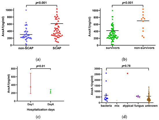 Chicago/Turabian StyleGu, Minghao, Xiudi Han, Xuedong Liu, Fengxiang Sui, Quansan Zhang, and Shengqi Pan. 2023. "Predictive Value of Annenxin A1 for Disease Severity and Prognosis in Patients with Community-Acquired Pneumonia" Diagnostics 13, no. 3: 396. https://doi.org/10.3390/diagnostics13030396