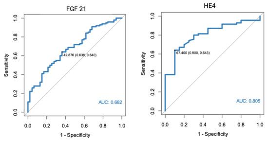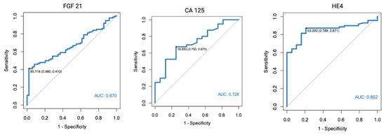 3.5. The Assessment of FGF 21, CA 125, and HE4 as Diagnostic Biomarkers