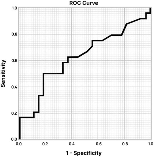 ROC curve for SUVmax of HMLN. The curve had an AUC of 0.625 (95% CI 0.468–0.782) with a cut-off SUVmax 4.7.