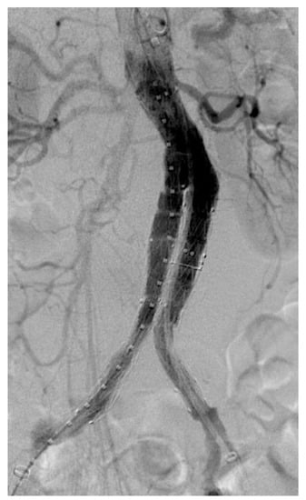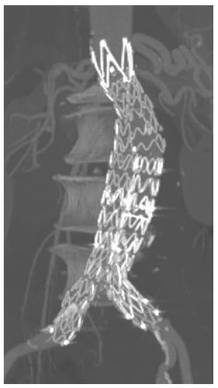 - Wanhainen, A.; Verzini, F.; Van Herzeele, I.; Allaire, E.; Bown, M.; Chohnert, T.; Dick, F.; van Herwaarden, J.; Karkos, C.; Koelemay, M.; et al. Editor’s Choice—European Society for Vascular Surgery (ESVS) 2019 Clinical Practice Guidelines on the Management of Abdominal Aorto-iliac Artery Aneurysms. Eur. J. Vasc. Endovasc. Surg. 2019, 57, 8–93, Erratum in Eur. J. Vasc. Endovasc. Surg. 2020, 59, 494. [Google Scholar] [CrossRef]