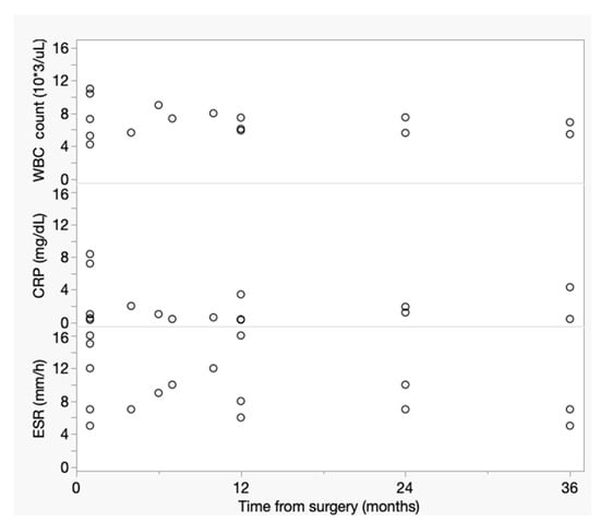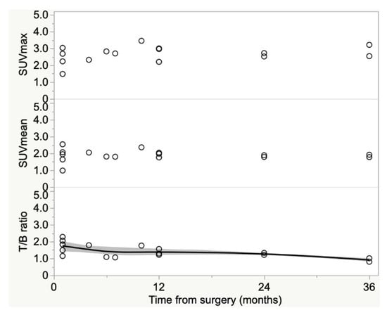 | Pt. | Time from Surgery (Months) | ESR (mm/h) | WBC Count (103/uL) | CRP (mg/dl) | SUVmax | SUVmean | T/B Ratio |