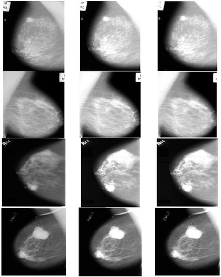 - Devi, S.; Bhateja, V. Mammographic Image Enhancement using Double Sigmoid Transformation Function. In Proceedings of the International Conference on Computer Applications, Pondicherry, India, 24–27 December 2010; Volume 34, pp. 259–264. [Google Scholar]