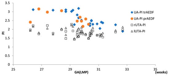 In the current study, the UA-PI exceeded the 95th percentile in all AEDF cases, with high UA-PI being an early sign of severely increased resistance in UA [,].