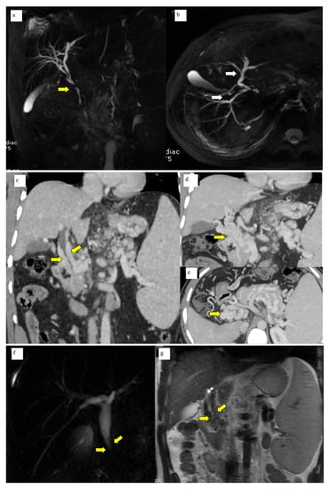 - Condat, B.; Vilgrain, V.; Asselah, T.; O'Toole, D.; Rufat, P.; Zappa, M.; Moreau, R.; Valla, D. Portal cavernoma-associated cholangiopathy: A clinical and MR cholangiography coupled with MR portography imaging study. Hepatology 2003, 37, 1302–1308. [Google Scholar] [CrossRef] [PubMed]