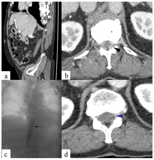 - Paksoy, Y.; Gormus, N. Epidural Venous Plexus Enlargements Presenting with Radiculopathy and Back Pain in Patients with Inferior Vena Cava Obstruction or Occlusion. Spine 2004, 29, 2419–2424. [Google Scholar] [CrossRef] [PubMed]