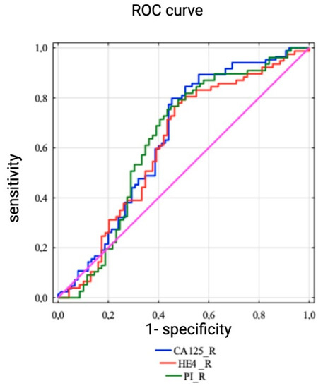 Several attempts were made to use tumor markers as screening tests [5,6]; however, they have failed to meet the population criteria of screening studies. A recent UK Collaborative Trial of Ovarian Cancer Screening (UKCTOCS) did not show a reduction in mortality in a screening trial using transvaginal ultrasound and/or serum CA125 measurement, illustrating an urgent need for additional ovarian cancer-specific biomarkers [6]. In the diagnostic processes, ultrasound examination is commonly used, and if performed by an experienced expert clinician guarantees the highest sensitivity and specificity in the assessment of the risk of malignancy of ovarian tumors [7]. In 2000, a group of researchers from the International Ovarian Tumor Analysis (IOTA) presented universal definitions to describe ovarian pathologies to standardize the ultrasound examination nomenclature and allow identical interpretation of the ultrasound image by different researchers around the world [8,9]. In order to improve the diagnostic possibilities used in the diagnosis of malignant ovarian lesions, numerous different models and scoring systems have been developed. The Risk of Malignancy Index (MRI) is the most commonly used, which uses the concentration of the CA125 marker, patient menopausal status, and five ultrasound parameters (multiventricular cyst, solid elements, ascites, bilateral tumors, metastases). A milestone, which allowed for better differentiation between benign lesions and ovarian cancer, was the introduction of the Risk of Ovarian Malignancy Algorithm (ROMA), which combines the determination of HE4 and CA125 in one test, accounting for a patient’s menopausal status. A joint determination of HE4 and CA125 has led to a significantly higher accuracy than separate, mono-determination of either CA125 or HE4 [10]. The concentrations of both CA125 and HE4 can be altered due to multiple factors. High CA125 levels are often noticed among patients suffering from benign gynecological conditions including endometriosis, pelvic inflammatory disease and benign ovarian tumors. Increased HE4 levels were found among patients diagnosed with mesothelioma, lung/breast adenocarcinoma and endometrial cancer, or renal failure; however, this was not found in benign pelvic diseases [11,12,13].