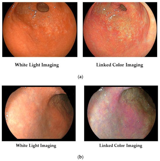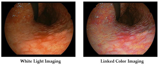 - Dohi, O.; Ono, S.; Kawada, K.; Kitamura, S.; Hatta, W.; Hori, S.; Kanzaki, H.; Murao, T.; Yagi, N.; Sasaki, F.; et al. Linked color imaging provides enhanced visibility with a high color difference in upper gastrointestinal neoplasms. J. Gastroenterol. Hepatol. 2022, 38, 79–86. [Google Scholar] [CrossRef] [PubMed]