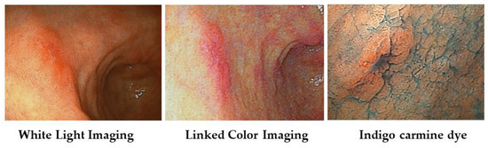 - Yasuda, T.; Yagi, N.; Omatsu, T.; Hayashi, S.; Nakahata, Y.; Yasuda, Y.; Obora, A.; Kojima, T.; Naito, Y.; Itoh, Y. Benefits of linked color imaging for recognition of early differentiated-type gastric cancer: In comparison with indigo carmine contrast method and blue laser imaging. Surg. Endosc. 2021, 35, 2750–2758. [Google Scholar] [CrossRef]