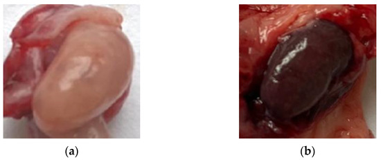 Photos of the studied clinically healthy cat ovaries: (a) light; (b) dark.