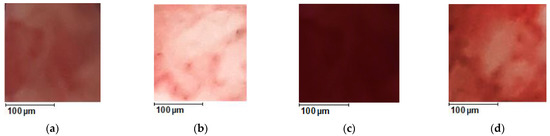 Figure 13 shows visual changes in the studied tissue samples before and after optical clearing with 99.5% glycerol. The images were taken using the camera of a Samsung Galaxy A51 smartphone with a resolution of 48 MP. To obtain the photos, the samples were placed on a sheet of white paper with white light falling from above.