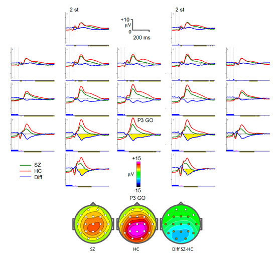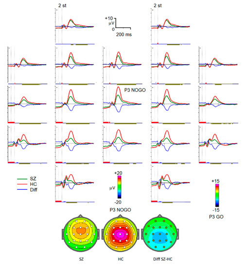 - Ertekin, E.; Üçok, A.; Keskin-Ergen, Y.; Devrim-Üçok, M. Deficits in Go and NoGo P3 potentials in patients with schizophrenia. Psychiatry Res. 2017, 254, 126–132. [Google Scholar] [CrossRef]