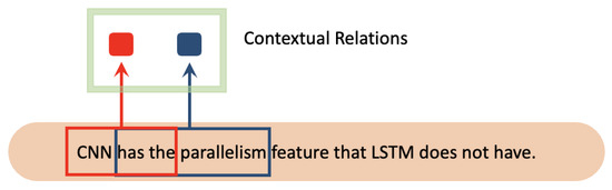 CNN [24] has a parallelism feature that LSTM does not have. It achieves the extraction of contextual relations by performing convolutional calculations via sliding windows for a specific length of text. Figure 10 shows the convolutional processing of CNN.