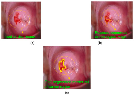 Severe (a) cervical; (b) cancer segmentation outcome; (c) gold typical image.