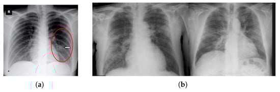 - Rajpurkar, P.; Irvin, J.; Zhu, K.; Yang, B.; Mehta, H.; Duan, T.; Ding, D.; Bagul, A.; Langlotz, C.; Shpanskaya, K.; et al. Chexnet: Radiologist-level pneumonia detection on chest x-rays with deep learning. arXiv 2017, arXiv:1711.05225. [Google Scholar]