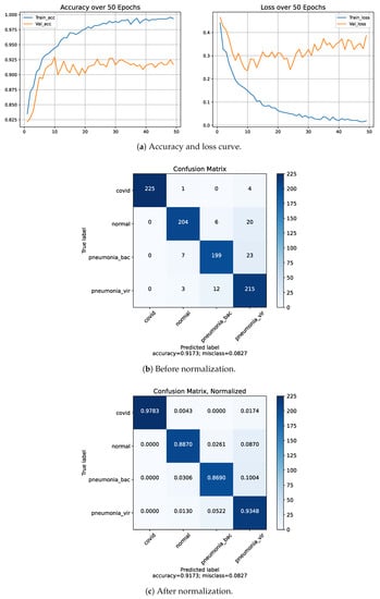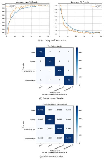 So, in this case, we fine-tuned the hyper-parameters in order to make our model perform well. The proposed model uses an image size of (224 × 224) and the weights of the model are ImageNet with Adam optimizer [], the learning rate of 1 × 10−5, the batch size of 32, and the number of epochs used for each of the experiments is 50. In addition, SoftMax (activation function) [] is used in this study to classify the images not only in two-class but also multi-class. The summary of the proposed model is presented in Table 3.