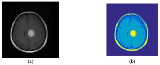 The proposed model was implemented using MATLAB 2016a. A subset of the BRATS 2014 database [31] was used to evaluate the proposed method. There are 120 MRIs in this database, divided into two categories: normal (60 samples) and tumor (60 samples). MRIs of various slices of the brain are included in each sample in this database. An MRI slice is used to detect the presence of a tumor due to the large sample size. It is clear that this will not affect the generality of the proposed model’s application. The second database was Brain Tumor Detection 2020 (BTD20) [32]. This Database contains 3000 MRIs, out of which 1500 samples contain tumors, while the remaining 1500 samples are normal.