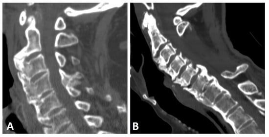- Bakhsh, W.; Saleh, A.; Yokogawa, N.; Gruber, J.; Rubery, P.T.; Mesfin, A. Cervical Ossification of the Posterior Longitudinal Ligament: A Computed Tomography–Based Epidemiological Study of 2917 Patients. Glob. Spine J. 2019, 9, 820–825. [Google Scholar] [CrossRef]