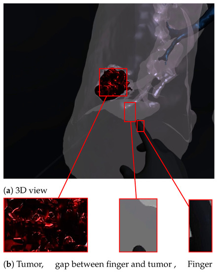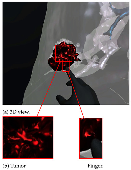 Virtual reality viewer of the tumor before touching lesion.