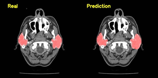 - Hänsch, A.; Schwier, M.; Gass, T.; Morgas, T.; Haas, B.; Dicken, V.; Meine, H.; Klein, J.; Hahn, H.K. Evaluation of deep learning methods for parotid gland segmentation from CT images. J. Med. Imaging 2019, 6, 011005. [Google Scholar] [CrossRef]