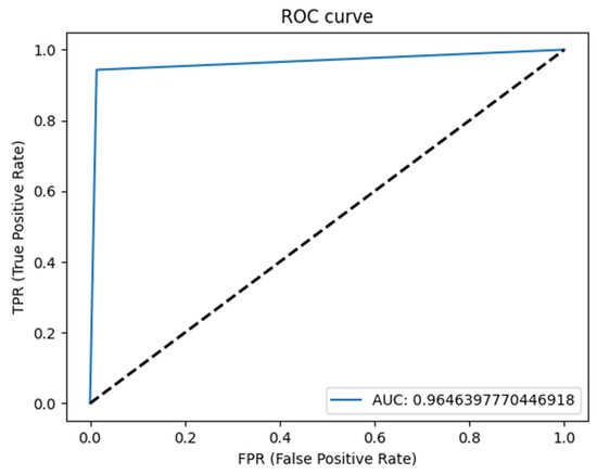 The U-Net based algorithm (CranioCatch, Eskisehir-Turkey) predicted the pixels of the parotid glands with more than 50% intersection in all samples (Figure 2). The values of the F-measure, precision, and sensitivity were all determined to be 1.0 in terms of segmenting the parotid gland axial slices of CT images successfully (Table 1). The Area Under Curve (AUC) value was found to be 0.96 (Figure 3 and Figure 4).