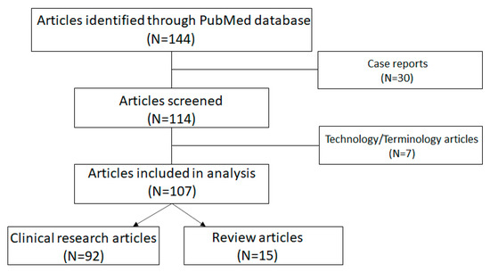 One hundred and forty-four articles including the aforementioned search terms were identified (Scheme 1). Case report articles were excluded, leaving 114 articles. We found that 4 articles were published in 2016, 17 in 2017, 14 in 2018, 21 in 2019, 14 in 2020, 18 in 2021 and 26 before the end of August 2022. After having been more or less constant from 2017 until 2021, there was a substantial increase in articles in 2022. Of the articles, 7 were mainly technical informative or consensus-based definition or standardization articles [22,23,24,25,26,27,28,29,30], 92 were research articles and 15 were review articles or articles directly comparing OCT-A to dye methods. The latter two categories were analyzed in more details in the next two sections.