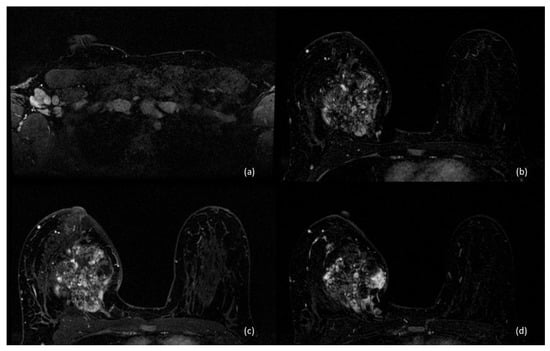 - Rizzo, V.; Moffa, G.; Kripa, E.; Caramanico, C.; Pediconi, F.; Galati, F. Preoperative Staging in Breast Cancer: Intraindividual Comparison of Unenhanced MRI Combined With Digital Breast Tomosynthesis and Dynamic Contrast Enhanced-MRI. Front. Oncol. 2021, 11, 661945. [Google Scholar] [CrossRef]