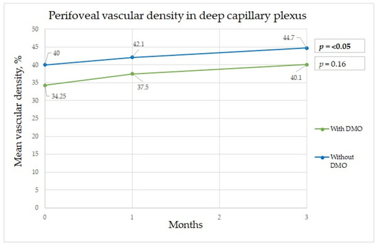 Perifoveal vascular density changes in deep capillary plexus during three-month period.
