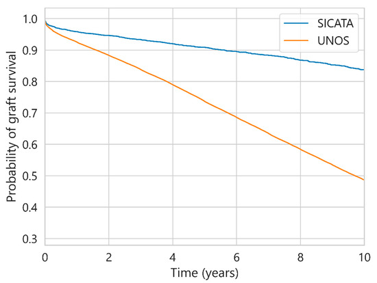Probability of graft survival for UNOS and SICATA.