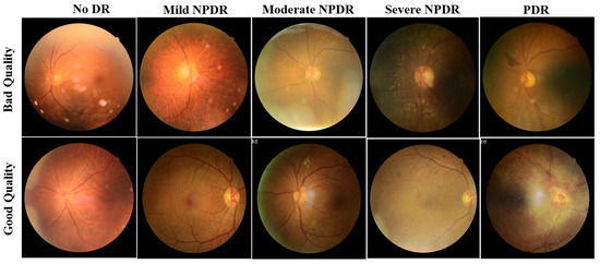 - Yu, F.; Sun, J.; Li, A.; Cheng, J.; Wan, C.; Liu, J. Image quality classification for DR screening using deep learning. In Proceedings of the 2017 39th Annual International Conference of the IEEE Engineering in Medicine and Biology Society (EMBC), Jeju, Republic of Korea, 11–15 July 2017; pp. 664–667. [Google Scholar] [CrossRef]