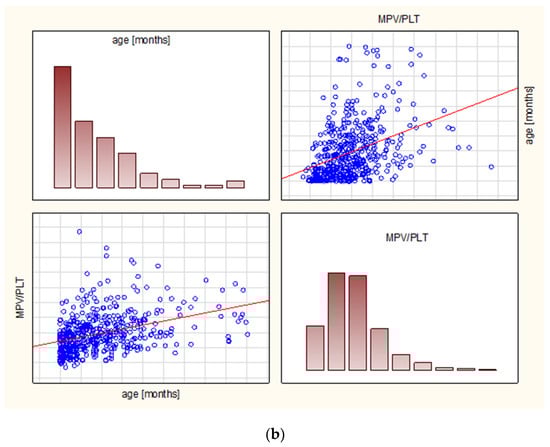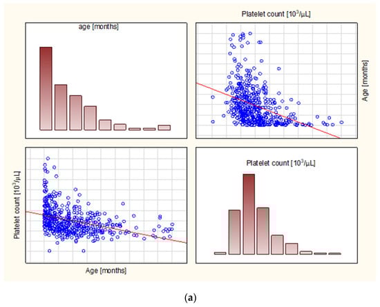 In our study, we also analyzed the relationship between the patient’s age and the PLT number and found a moderate negative correlation (rho = −0.46). The recognition of age-related specificities is mirrored in the statistical significance of AUCs in the age groups. In the majority of cases, in children under 12 months of age this relationship was strong enough to result in statistical significance for the whole group, and, consequently, AUCs showed the highest values in this particular age group. An analysis of platelet parameters should be thus considered mostly in the youngest group of patients.